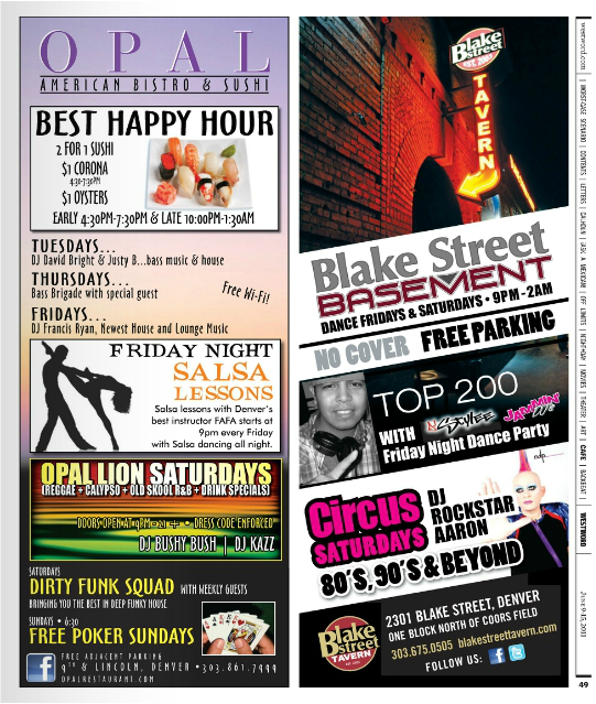 Denver Westword: Featured every month since the week of May 19th, 2011 edition for both Blake Street Tavern and Pat’s Downtown